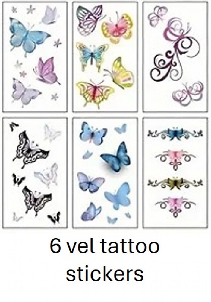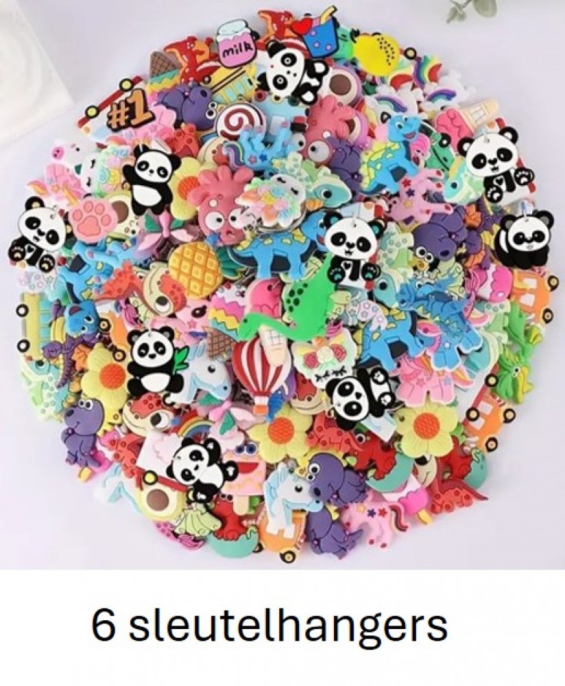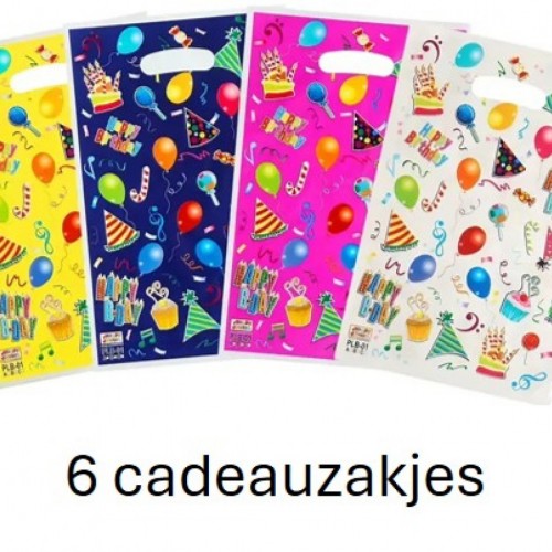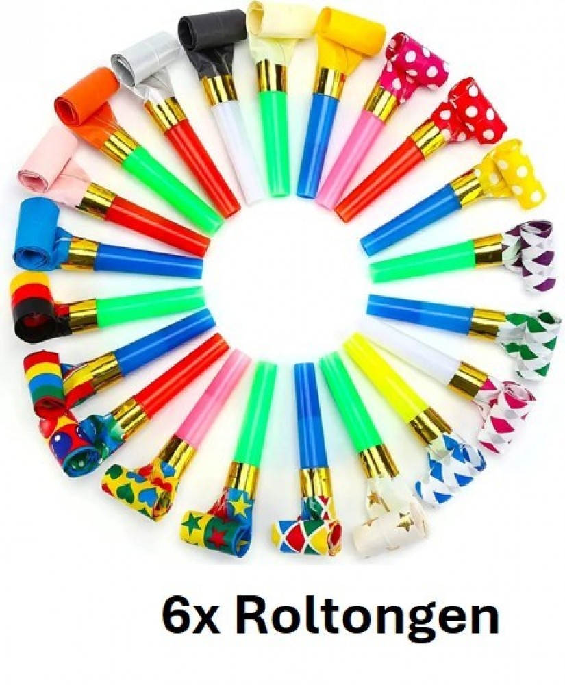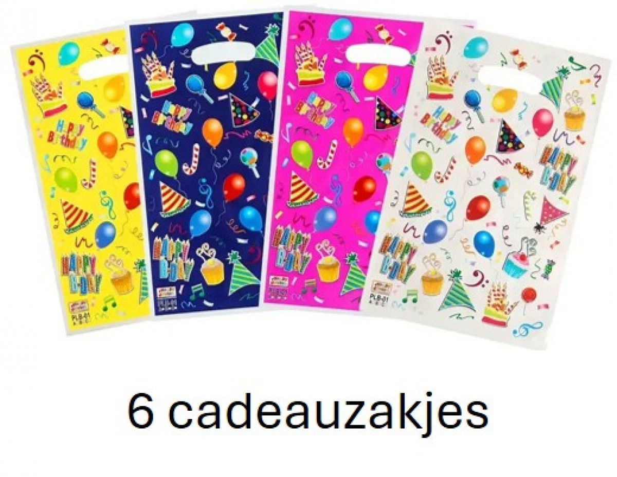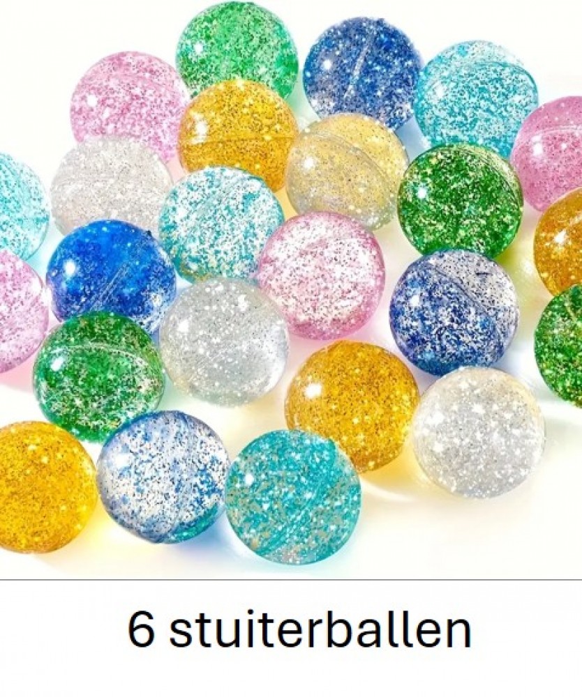 6 verzamelzakjes voor de presentjes 6 roltongen 6 sleutelhangers 6 vel tatoostickers 6 stuiterballen