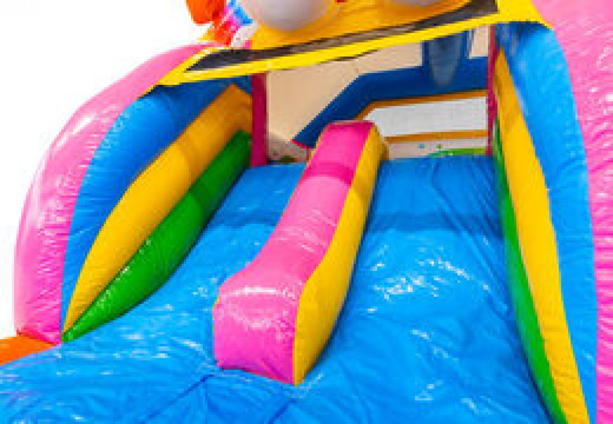 Vlieg mee met eenhoorns en spring erop los in deze magische wereld! Op dit springkussen zijn alle mogelijkheden voor urenlang speelplezier. Klim erin, spring erop los en roetsj van de glijbaan zo het badje in! De keuze is reuze, want er zijn zelfs twee glijbanen op dit te gekke springkussen.